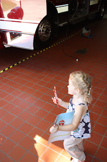 Addilyn gave each of the three firemen who helped us high fives. I was too embarrassed to take a picture of the one Addilyn referred to as handsome, but the one in the picture below was also really nice. Ha ha. They gave Addi and Josiah fire safety coloring books, pencils, and fire hats.